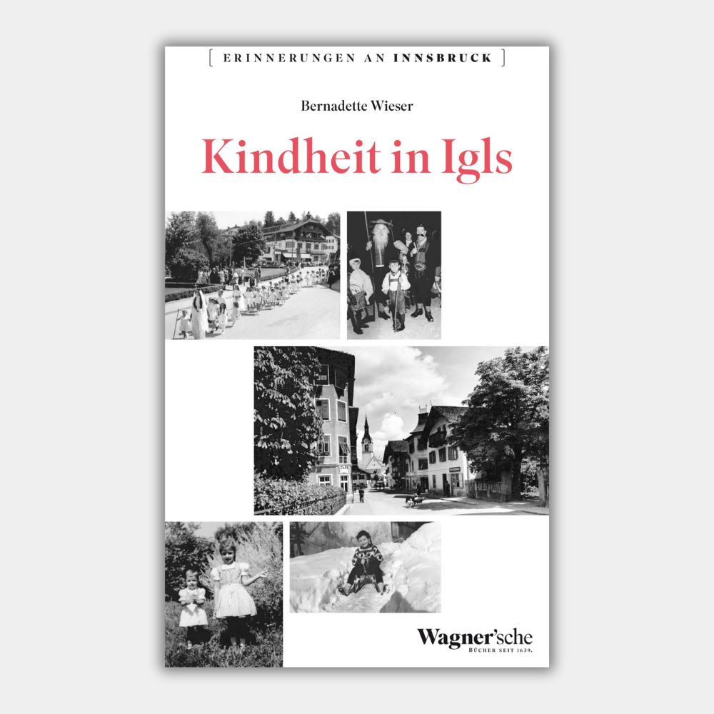 Alte Villen, schmucke Hotels, unter Denkmalschutz stehende Bauernhäuser und Kirchen prägen den Charakter des Dorfes Igls. Malerisch auf dem südlichen Sonnenplateau am Fuße des „Innsbrucker Hausbergs“ Patscherkofel gelegen, ist Igls seit 1942 ein Stadtteil von Innsbruck. Als Luftkurort zog es zahlreiche Feriengäste und Prominente an, die zwischen den 1960er und 90er Jahren in den vielen Hotels und Pensionen logierten. Bernadette Wieser erinnert sich in diesem Buch an ihr Aufwachsen in Igls, das sich trotz vieler Veränderungen seinen  dörflichen Charakter und seine idyllische Lage bis heute erhalten hat. Die Umtriebigkeit und Neugier ihres Vaters sowie die vielen Veranstaltungen und Begegnungen, etwa mit berühmten Gästen im Ort, machten ihre Kindheit und Jugend in den 1960er und 70er Jahren zu etwas Besonderem. Die Familie Wieser ist eine der ältesten in Igls. Schon der Großvater von Bernadette Wieser verdiente mit Fuhrwerken sein Geld. Nebenbei betrieb er noch eine kleine Landwirtschaft. Die Elternhäuser liegen mitten im Zentrum von Igls, direkt vor der Kirche in der Engstelle der Hilberstraße. „Überlieferungen sagen, dass die Häuser Hilberstraße 9 + 11 im Jahre 1833 vom verheerenden Dorfbrand verschont blieben. Der Sage nach war das Anwesen auch das Zuhause der beiden Hirten, die in Heiligwasser die Muttergottes-Erscheinung hatten. Deshalb auch das Fresko auf unserer Fassade.“ Dies und viele Interessante Begegnungen erzählt Bernadette Wieser in Ihrem Buch „Kindheit in Igls“.
